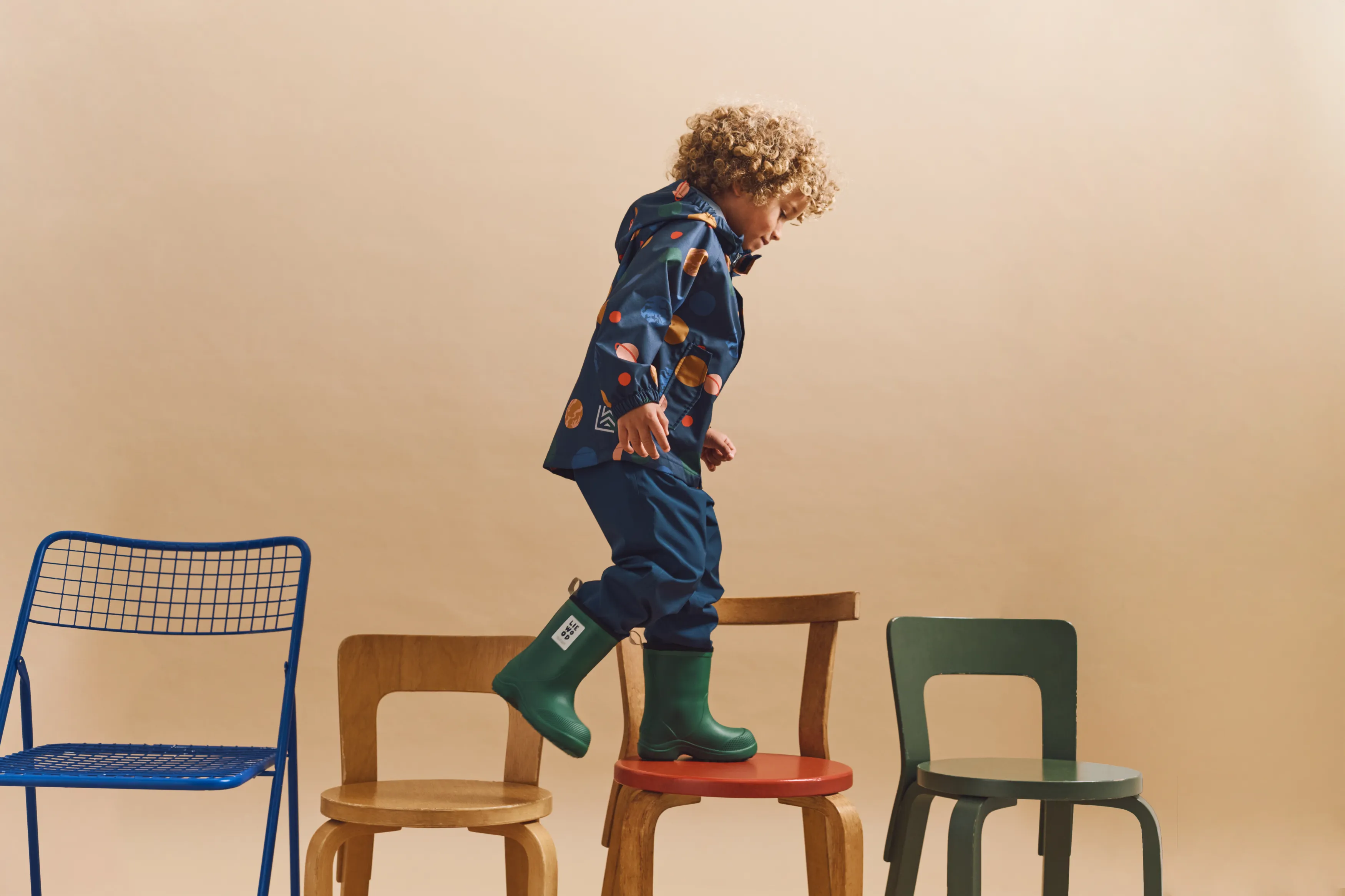 This outerwear range blends Scandinavian design with a strong focus on sustainability. Timeless silhouettes and functional details are crafted to support everyday adventures, with an emphasis on comfort, durability, and freedom of movement. The collection uses recycled fibres and GRS-certified (Global Recycled Standard) materials, ensuring transparency and reduced environmental impact throughout the supply chain. From padded jackets to rainwear, every element—from fabric to print—was carefully selected to uphold both performance and aesthetic standards. Thoughtfully designed and consciously made, the collection reflects a circular, considered approach to dressing the next generation.